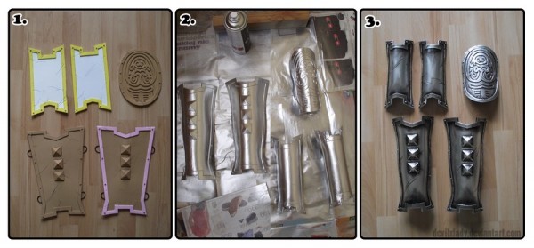 Идва и най-важният въпрос – как да започнем с изработката на бронята? Първо и най-важно – направете си шаблон. Може да го нарисувате върху лист хартия, да обвиете дадена част от тялото си с фолио, върху него да залепите хартиено тиксо и така по-точно да отбележите формата на желана част. След това нанесете формата с помощта на шаблона върху ЕВА пяна, изрежете я, използвайки макетния нож. Ако искате да залепите два края един за друг ги намажете с контактен цимент, оставете да изсъхне и след това ги притиснете един към друг.
